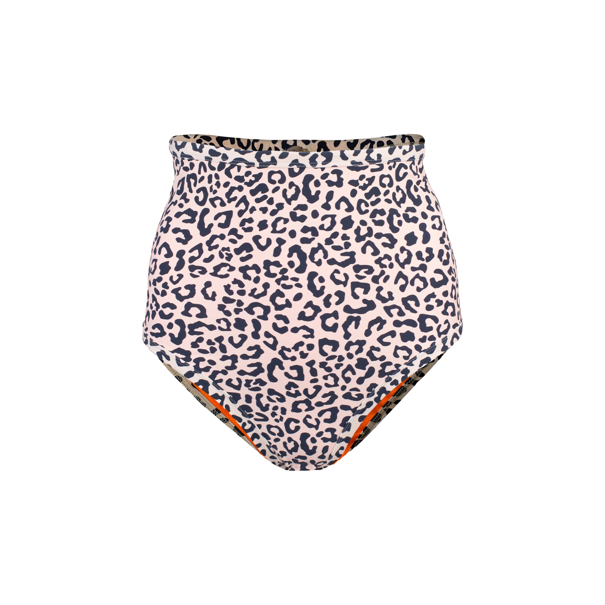Introducing the Rhea High Waisted Panty in animal print with neon orange lining.